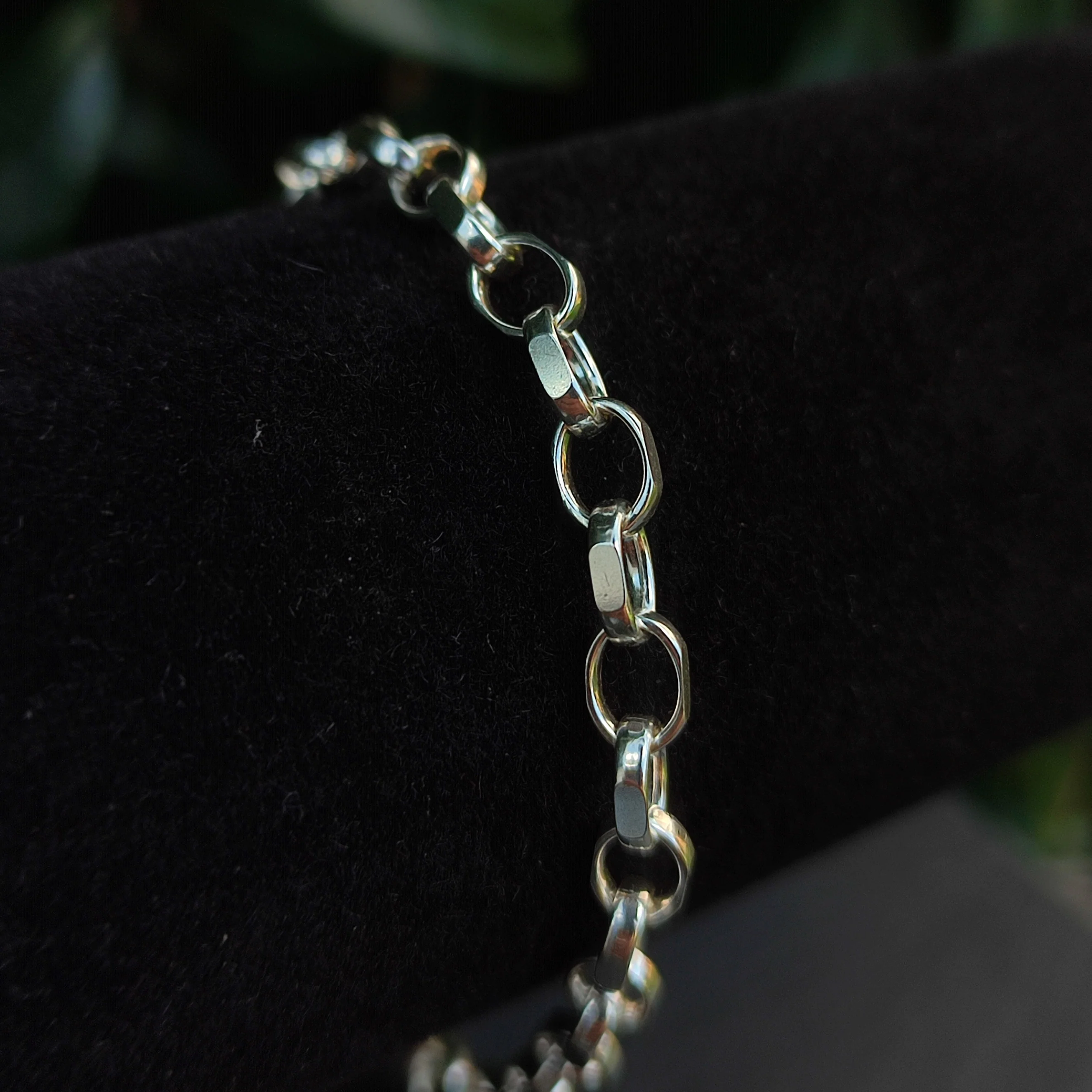 Each link is faceted to create flat surfaces that reflect light, giving the bracelet a brighter, more distinct shine than standard round belcher chains. The high-quality 925 silver is finished with a fine polish, ensuring a smooth feel against the skin.